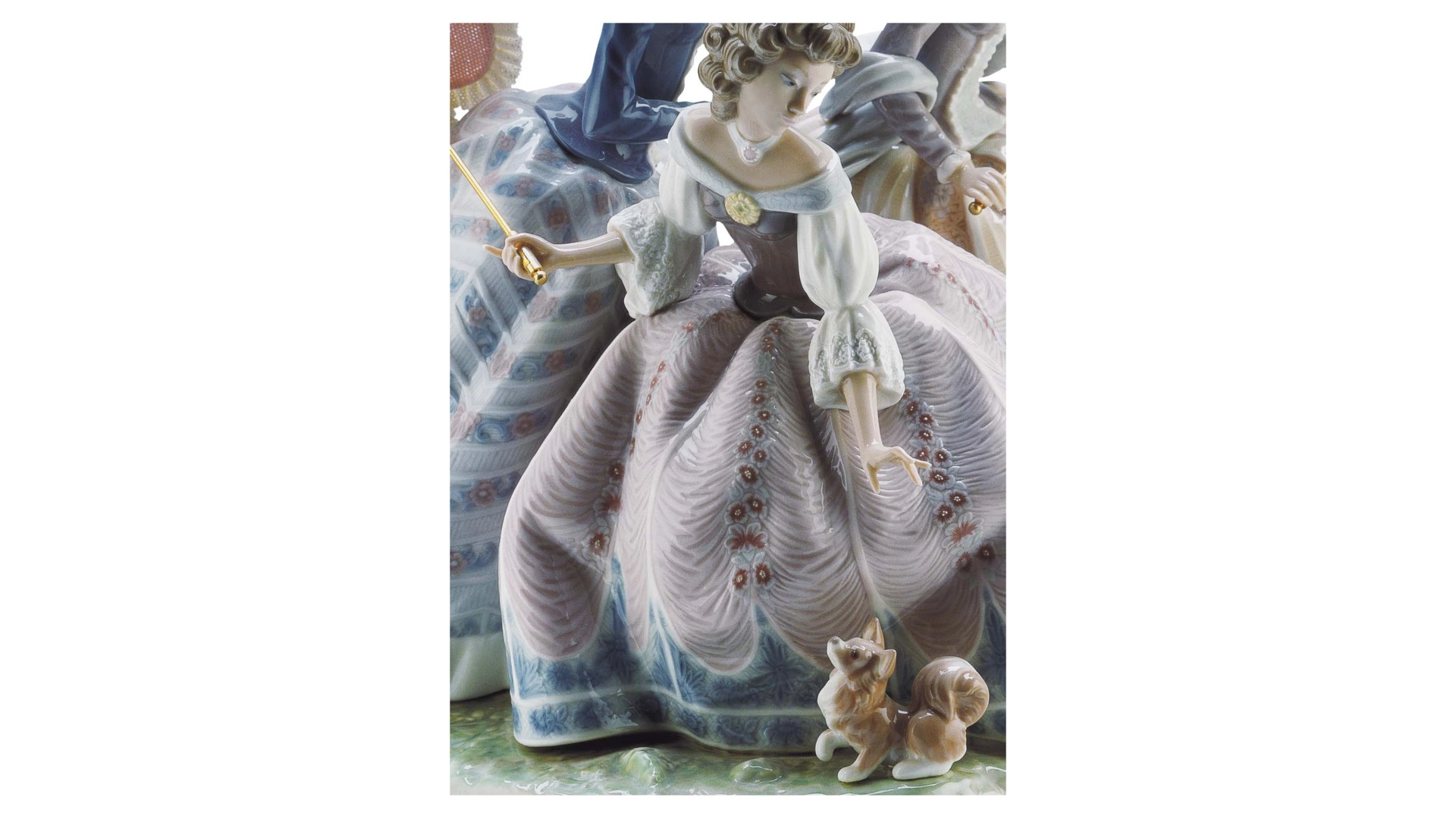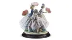 Скульптура «Три сестры» от испанского бренда Lladro — достойное украшение интерьера гостиной, спальни или кабинета. Работа скульптора Хосе Пуче изображает трио девушек, одетых в стиле рококо. На прогулке они встретили собачку — самая смелая протянула к ней руку, а остальные с любопытством наблюдают. Композиция идеально выверена, она хорошо смотрится, какой бы стороной вы её не повернули. Кудри в причёсках, кружева на зонтиках, складочки на рукавах и юбках выглядят как настоящие. Высокий уровень детализации достигается благодаря искусной ручной работе и запатентованной технологии обжига. Статуэтка изготовлена из твёрдого фарфора и расписана в нежных пастельных тонах.
