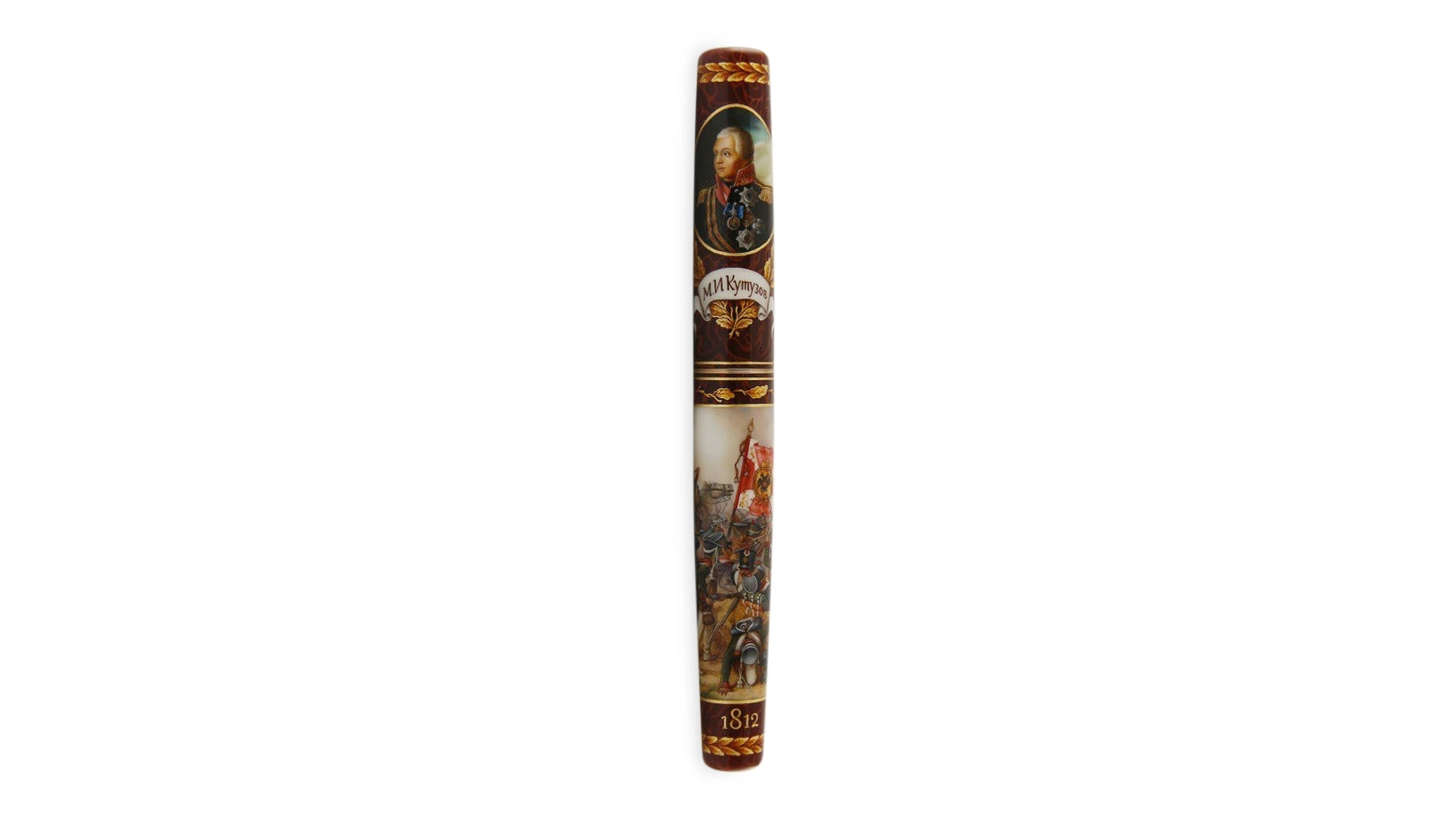 «Кутузов» — элитный пишущий аксессуар, созданный в единственном экземпляре. Изысканное произведение искусства, выполненное в сложной технике многослойной лаковой миниатюры. Артефакт, достойный притязательного эстета и успешного бизнесмена.