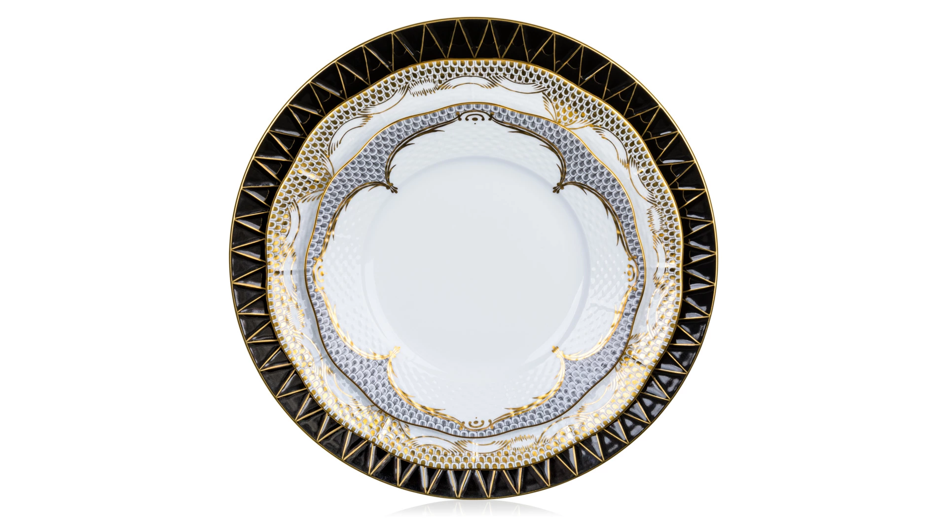 3. Тарелка подстановочная 31см «Универсальная» (черная, золото) — 6 шт